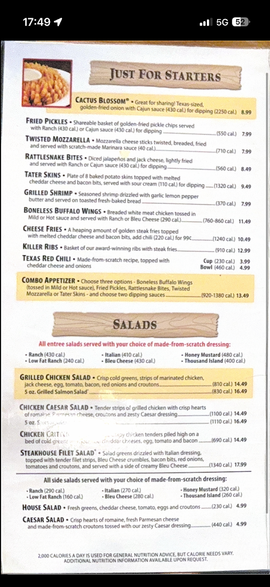 The Texas Roadhouse menu offers a straightforward selection of hearty American fare, perfect for those seeking a satisfying and familiar dining experience. The menu focuses on classic steakhouse staples alongside comforting chicken dishes and vibrant salads, making it an inviting choice for lunch or dinner in a casual, lively setting.
